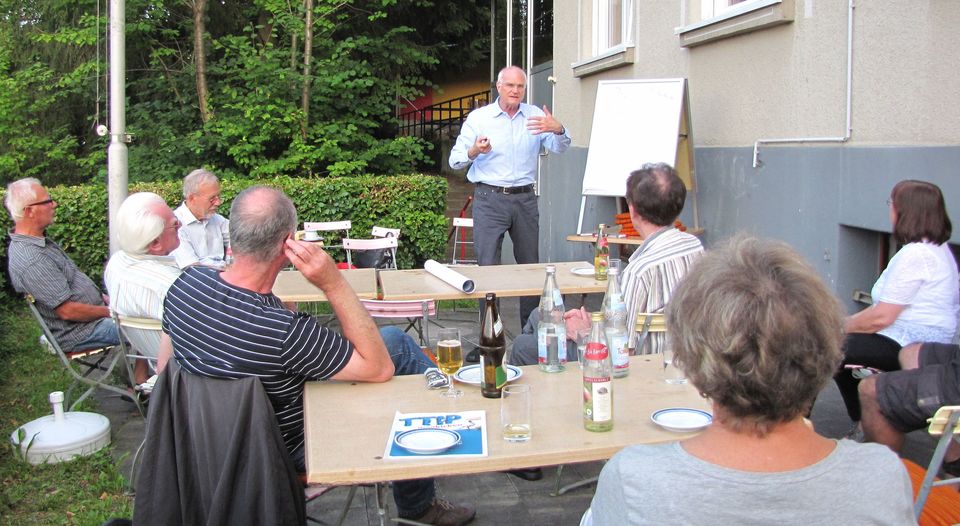 Das passt gut zusammen, hatte doch Harald Gfrörer für die SPD Pfinztal den finanzpolitischen Sprecher der Bundestagsfraktion zum Thema „Panamapapers“ eingeladen. Bei schönem Wetter wurde die Veranstaltung ins freie verlegt.