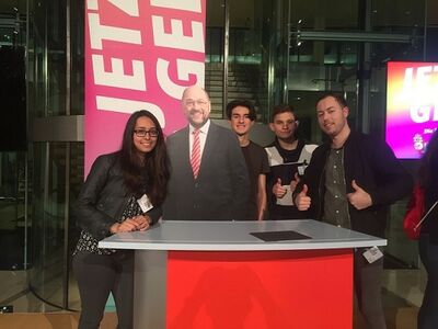 Bildunterschrift: Aisha Fahir (1.v.l.) mit den Jusos KA-Land in Berlin